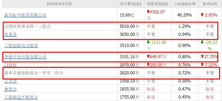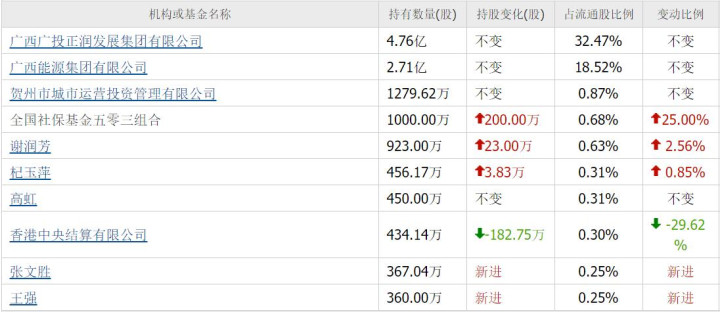 分别位列第二、三、五、七大流通股东。