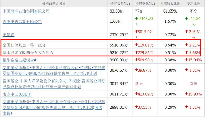 二季度,社保基金一零一组合加仓119万股,合计持有5516万股;