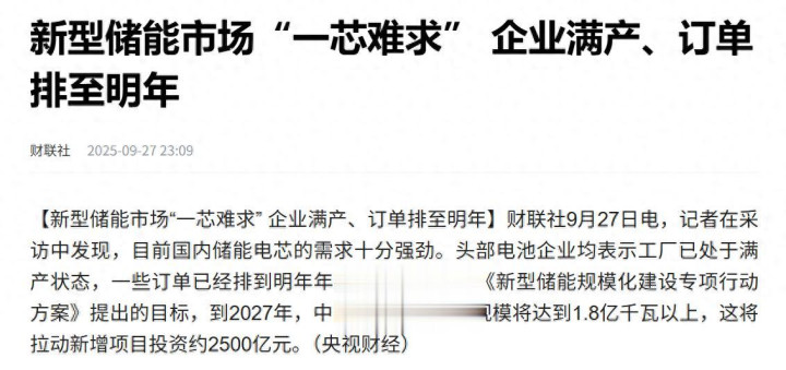第一个就是,最近的储能电芯,已经处于供不应求的状态,部分订单已经排到了明年年初。